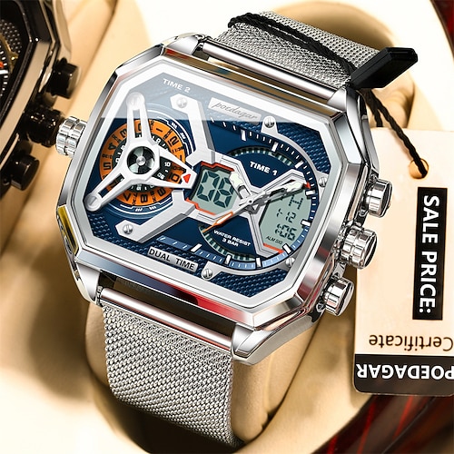 poedagar orologio da polso elettronico da uomo militare led allarme analogico-digitale doppio display orologio da uomo orologi sportivi impermeabili