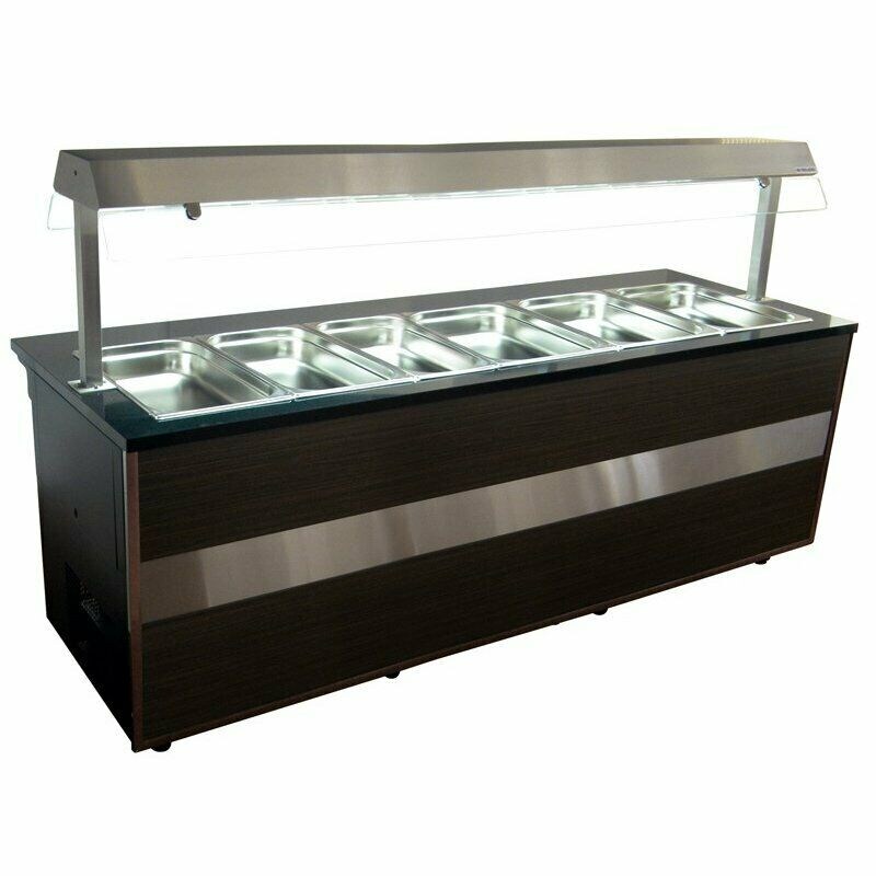 Gastro Heiße Theke Bain Marie Warmvitrine Buffetvitrine 5x 1/1 GN, 1x 2/4 GN 2000x800x1250 mm