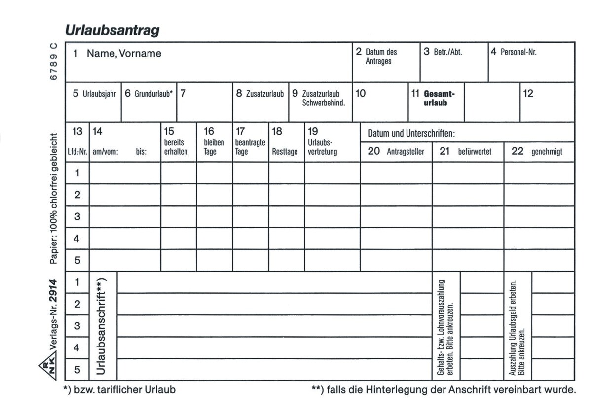RNK Urlaubs-Freistellungsantragsblock A6 quer 50 Blatt