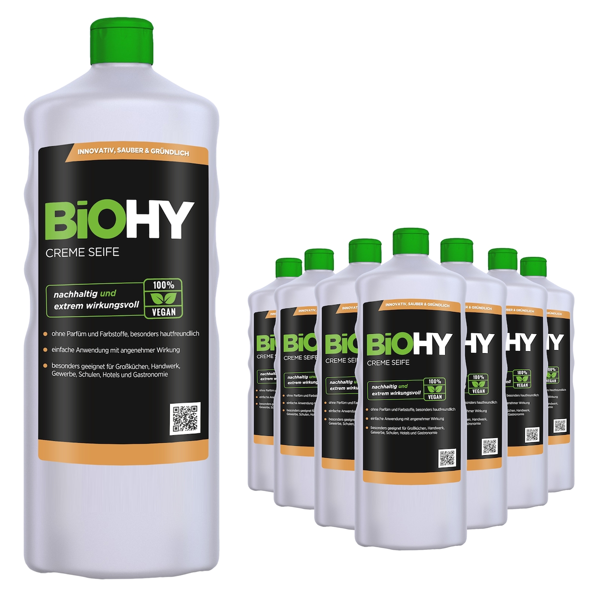 BiOHY Creme Seife (9x1l Flasche) | Hautschonende, rückfettende und geruchsneutrale Handseife PHOSPHATFREI | Ohne Parfüm und Farbstoffe