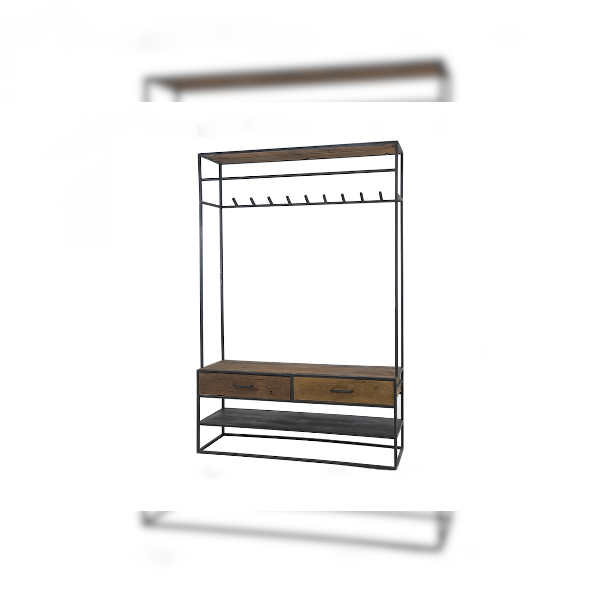 KAWOLA Garderobe TENBY Hartholz Metall schwarz 2 Schubladen 1 Ablage
