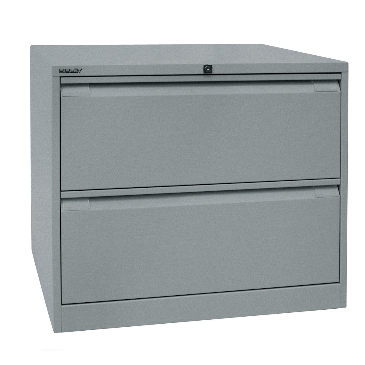 BISLEY Hängeregistraturschrank mit Schloss aus Metall in silber, 2 Schubladen, doppelbahnig - Hängeregisterschrank abschließbar, Hängeregistratur für