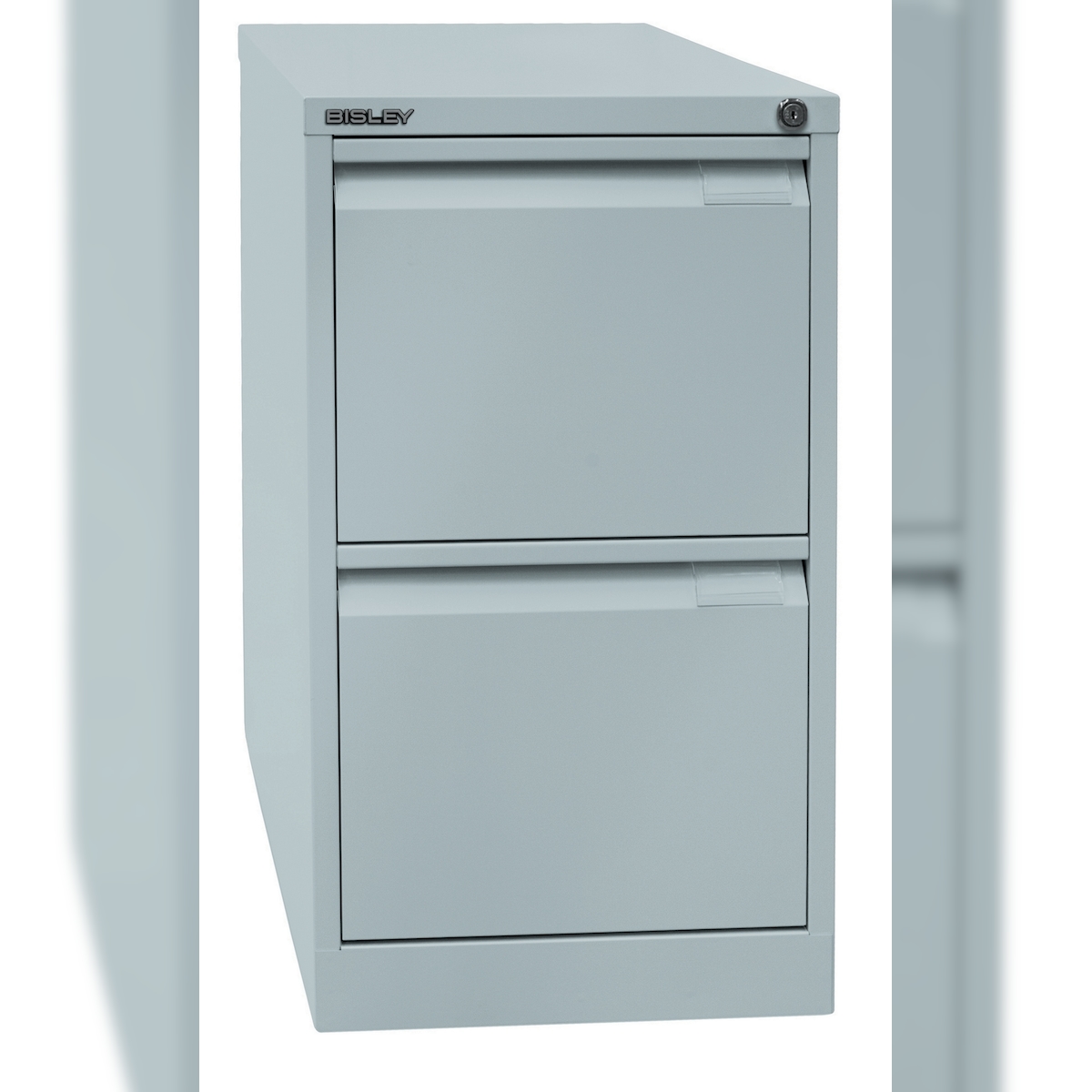 BISLEY Hängeregistraturschrank mit Schloss aus Metall in lichtgrau, 2 Schubladen, einbahnig - Hängeregisterschrank abschließbar, Hängeregistratur für