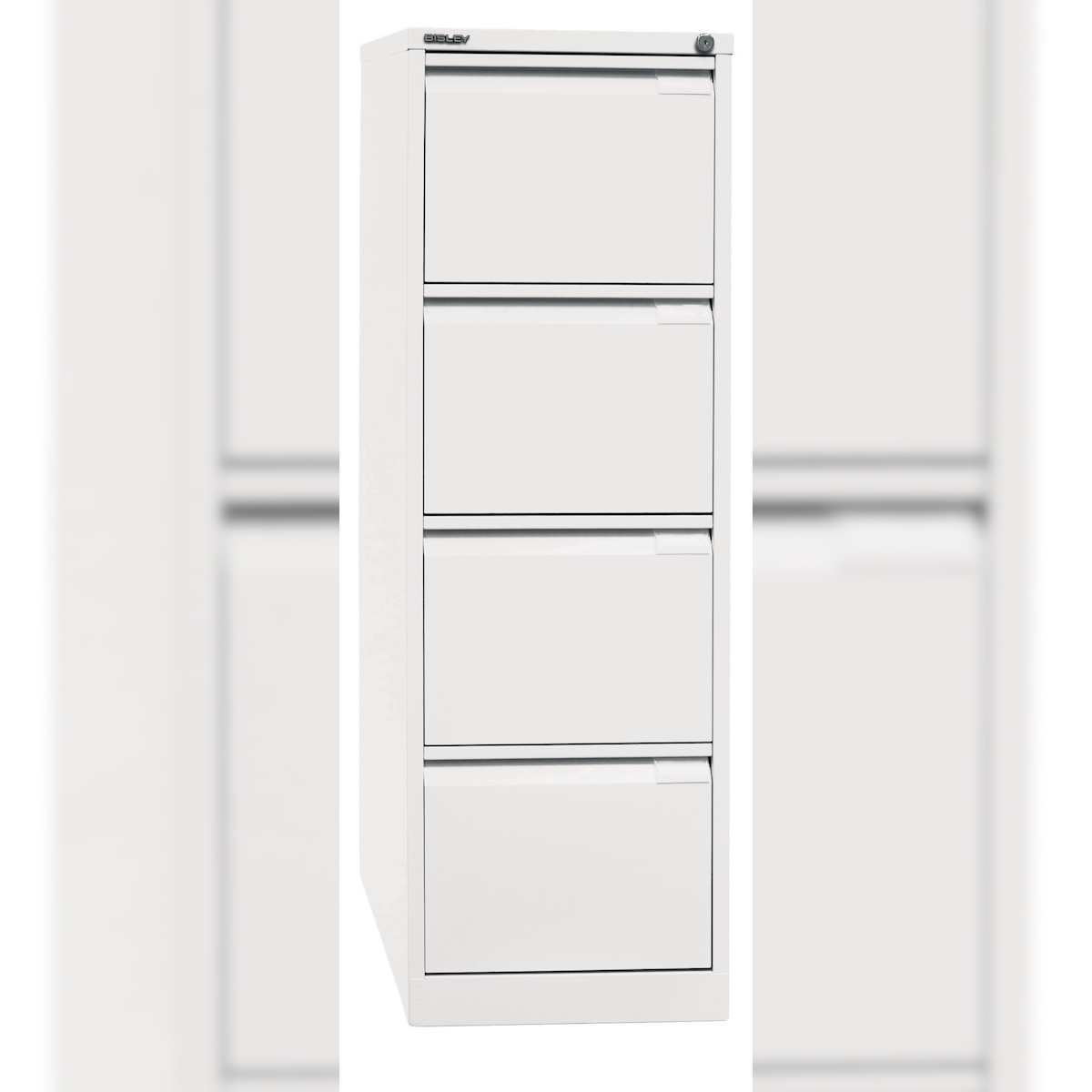 BISLEY Hängeregistraturschrank mit Schloss aus Metall in verkehrsweiß, 4 Schubladen, einbahnig - Hängeregisterschrank abschließbar, Hängeregistratur