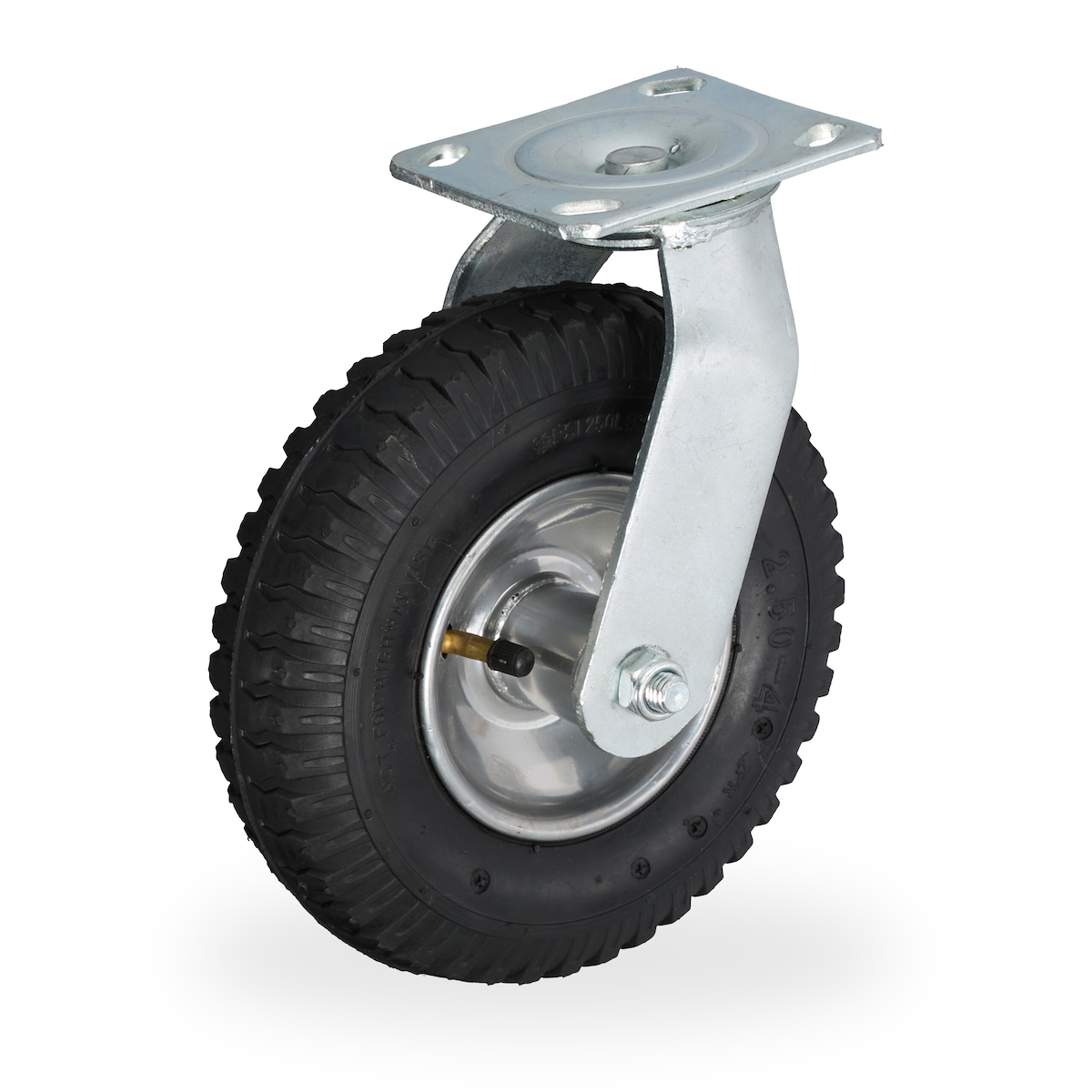 Relaxdays Lenkrolle, luftbereift, 2.50-4, Schwerlast-Transportrolle, Platte zum Anschrauben, bis 120 kg, schwarz/silber