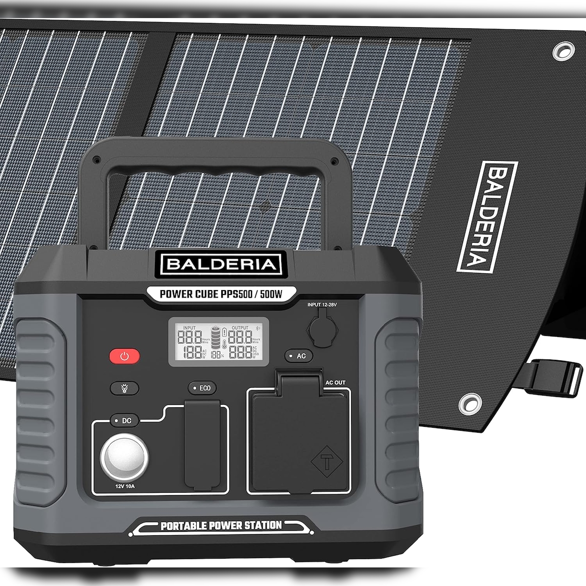 BALDERIA Power Set, tragbare Powerstation 500W mit faltbarem Solarpanel 60W