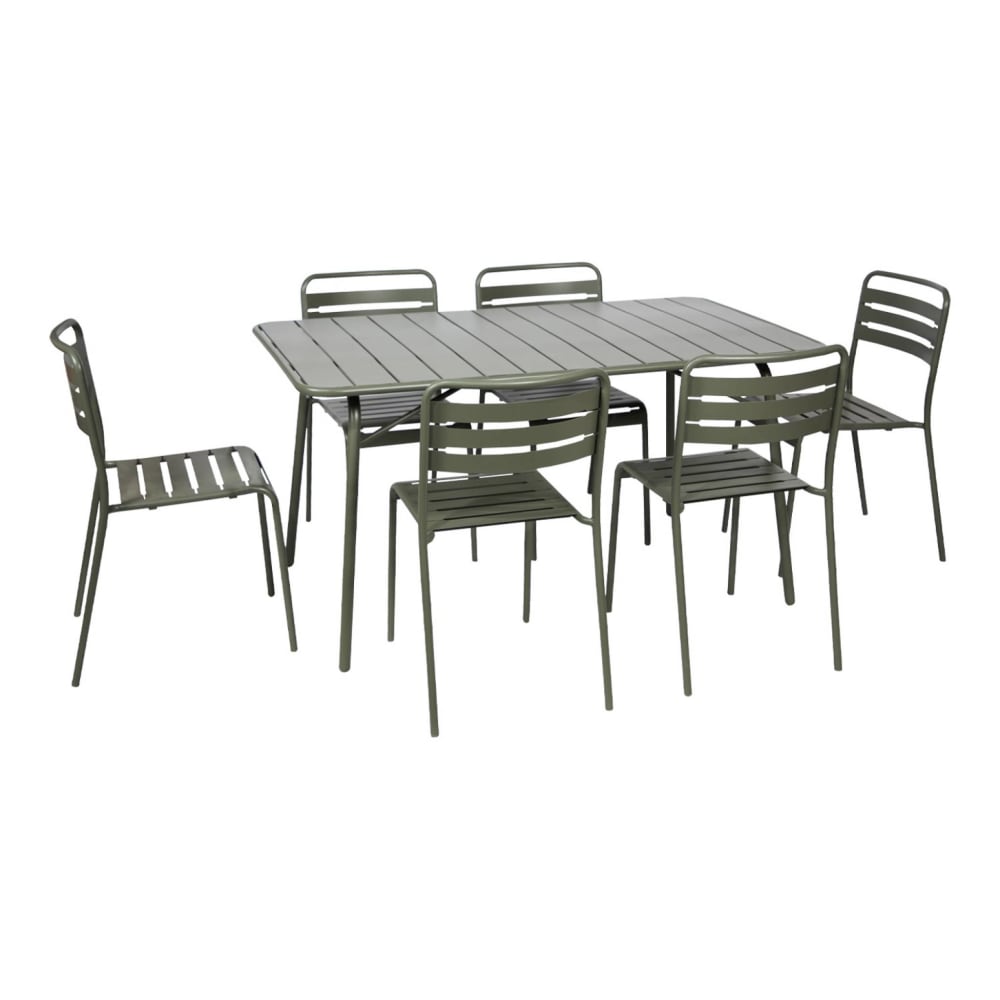 Set tavolo da giardino pieghevole in metallo con 6 sedie, verde kaki