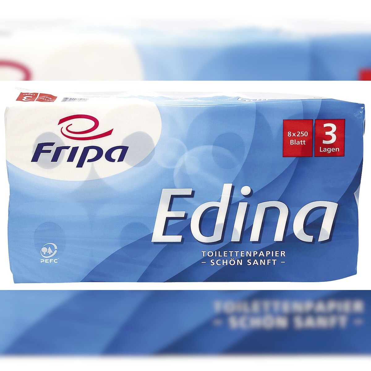 Fripa 1010812 Toilettenpapier Edina - 3-lagig, geprägt, hochweiß, 8 Rollen à 250 Blatt