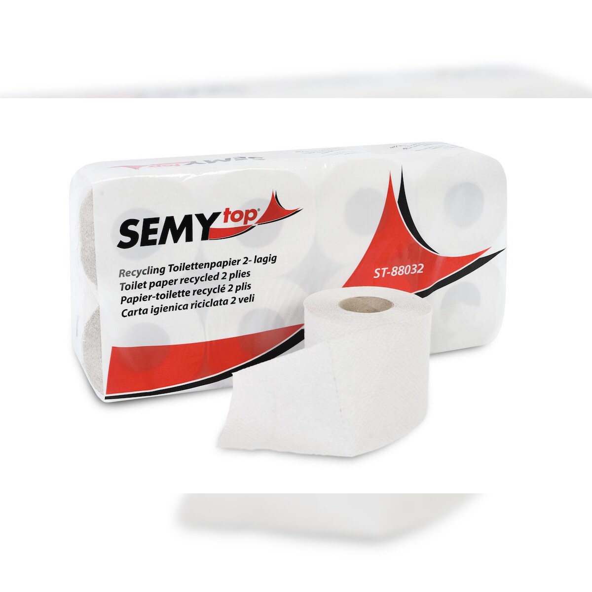 SemyTop 64 Rollen Toilettenpapier, recycling grau, 2lagig, 250 Blatt, 9,6x11cm, Vorratspack
