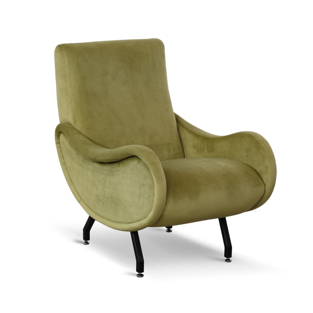 Pouf poltrona e poggiapiedi quadrato, ciniglia verde salvia