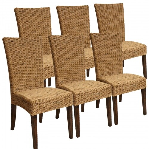Esszimmer Stühle Set 6 Stück Rattanstühle Wintergarten Korbstühle Cardine cabana : ohne Sitzkissen