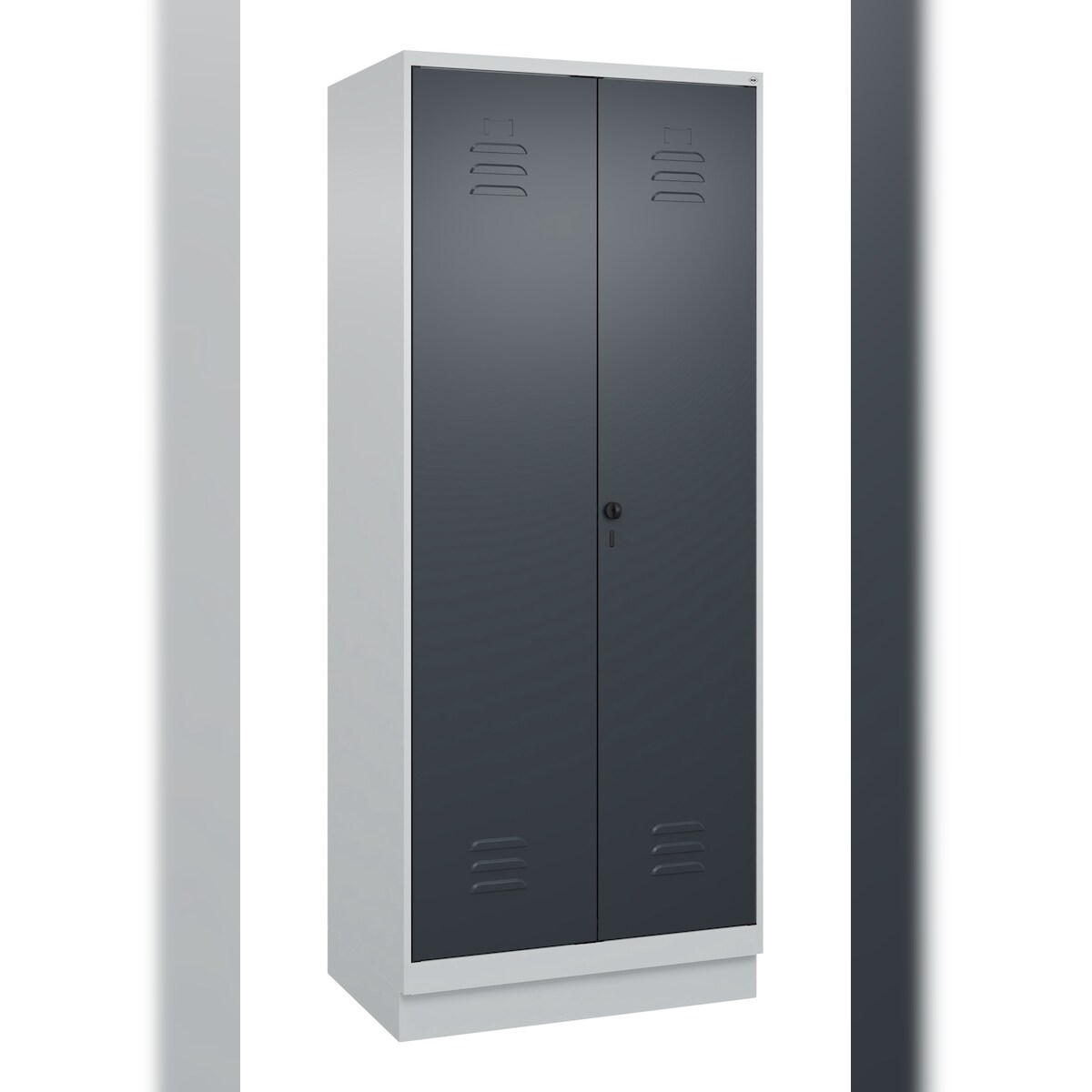C+P Aufbewahrungs Doppel-Spind Classic PLUS, Sockel, 2 Abteile, 5 Fachböden, HxBxT 195x80x50cm, Sicherheitsdrehriegel, Hellgrau/Anthrazit von PROREGAL
