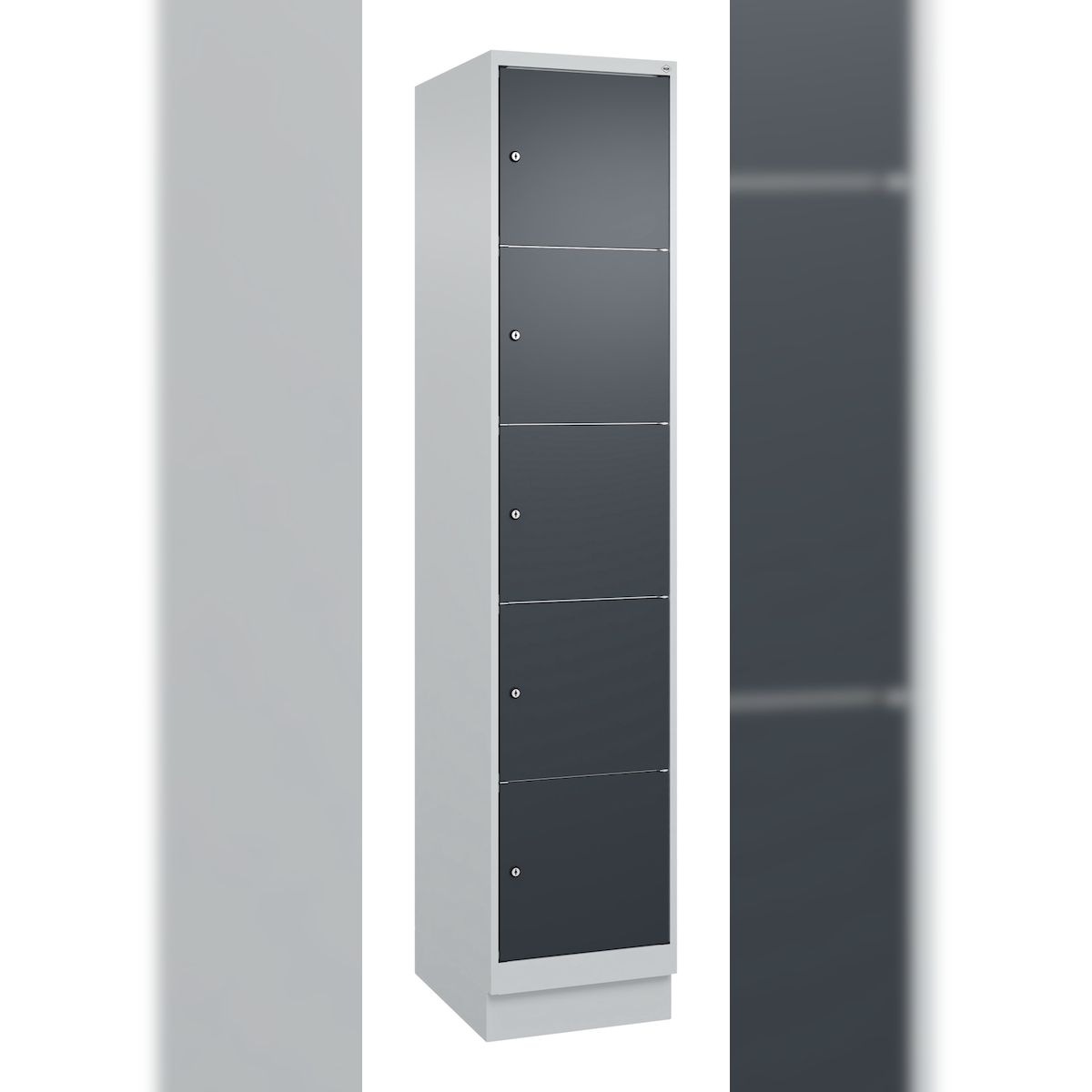 C+P Schließfachschränke Classic PLUS, Sockel, 5 Abteile, HxBxT 195x40x50cm, Zylinderschloss, Hellgrau/Anthrazit von PROREGAL