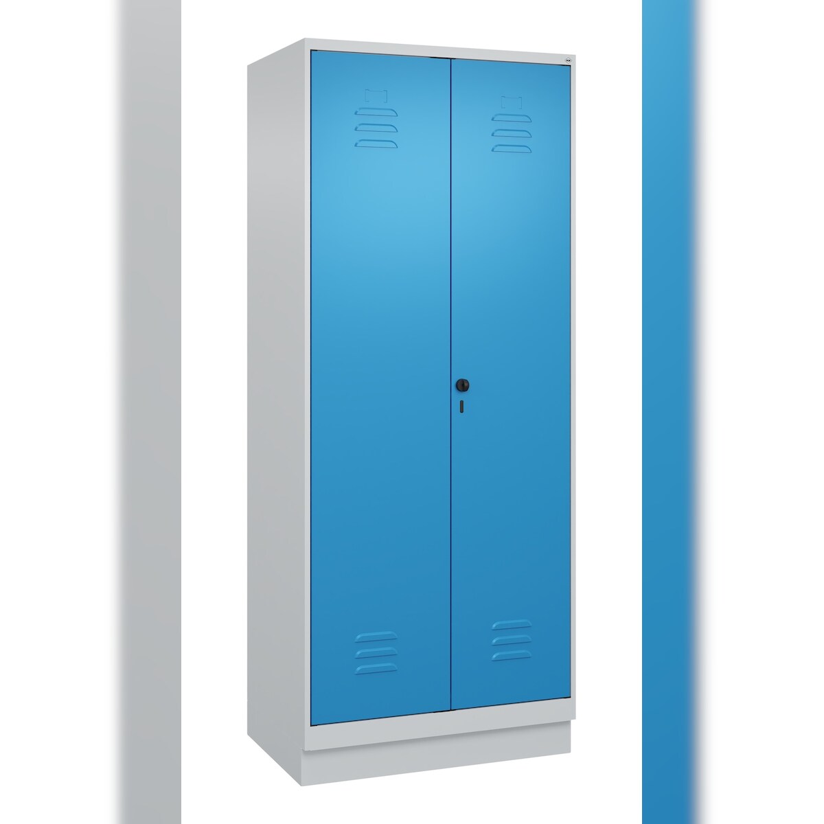 C+P Aufbewahrungs Doppel-Spind Classic PLUS, Sockel, 2 Abteile, 5 Fachböden, HxBxT 195x80x50cm, Sicherheitsdrehriegel, Hellgrau/Lichtblau von PROREGAL