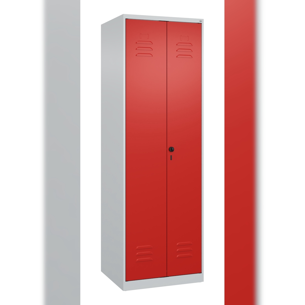 C+P Aufbewahrungs Doppel-Spind Classic PLUS, 2 Abteile, 5 Fachböden, HxBxT 185x60x50cm, Sicherheitsdrehriegel, Hellgrau/Rot von PROREGAL