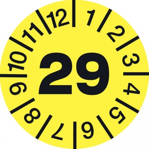 Dreifke® Prüfplakette gelb/schwarz 2029 - 10 mm Folie selbstklebend, 10 St