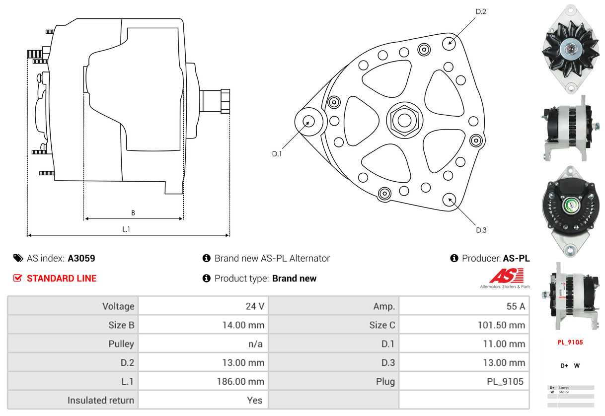 AS-PL Generator Universal 24V 55A für DAF VOLVO 11170011 VOE3173821 85000508 A3059