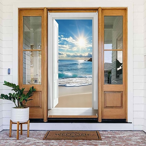 Tenda da porta con vista sull'oceano, prospettiva 3D, arazzo divisorio per camera da letto, cucina, ingresso, arredamento per la casa