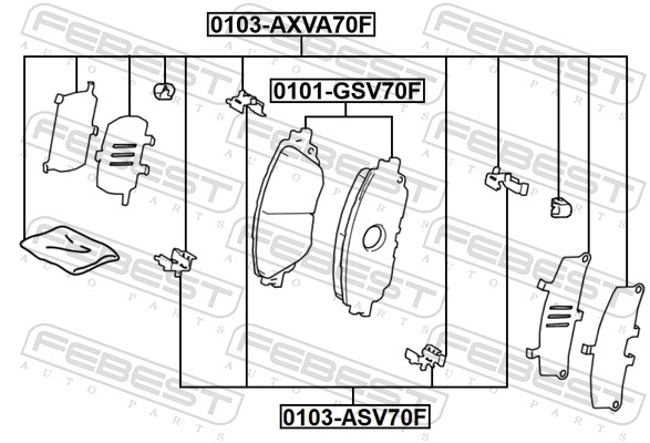 FEBEST Zubehörsatz, Scheibenbremsbelag 0103-ASV70F vorne rechts links für TOYOTA 04948-60050 04948-02200 04947-33280