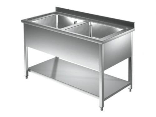 VM Europa Edelstahl Spültisch 2 Becken mittig, mit Grundboden, mit Aufkantung, Premium: 100 x 70 cm / mit Aufkantung / verschweißt