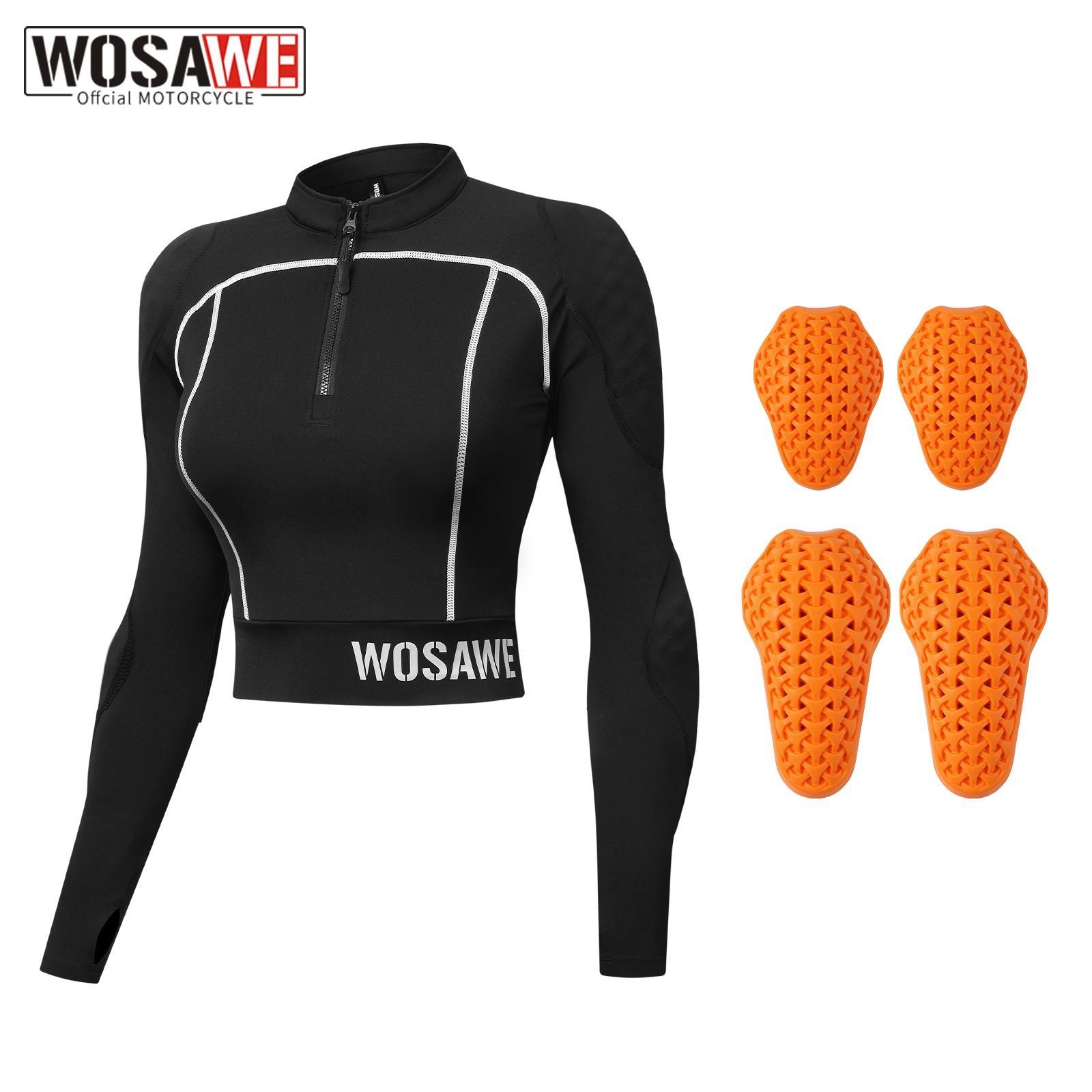 WOSAWE Women's Racing Motocross Jacket Slim Stretch Reflective Soft Pads Motorcycle Jacket black