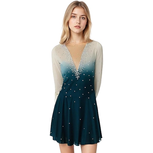 abito da pattinaggio artistico da bambina, maniche lunghe, elegante, fatto a mano, in cristallo, da competizione, da donna