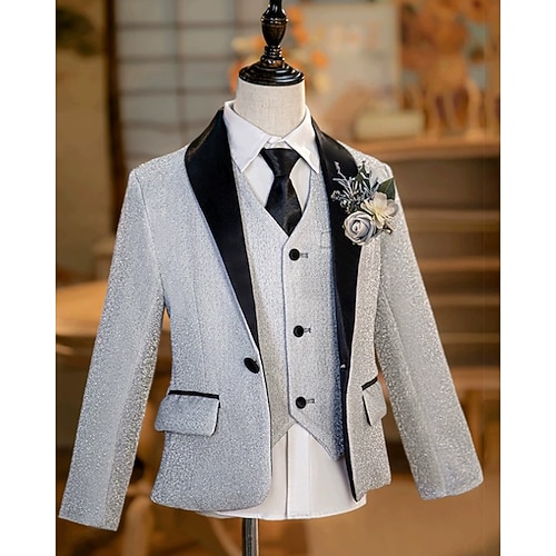 Completo da paggetto Ragazzi Bambini Abito Blazer, gilet, pantaloni, camicia e cravatta Casuale All'aperto Feste Moda Cool Essenziale Tinta unica Paillettes Tasca Bottoni Argento Poliestere