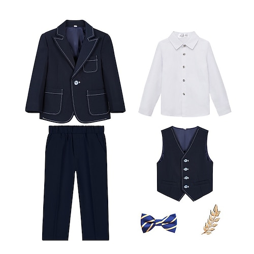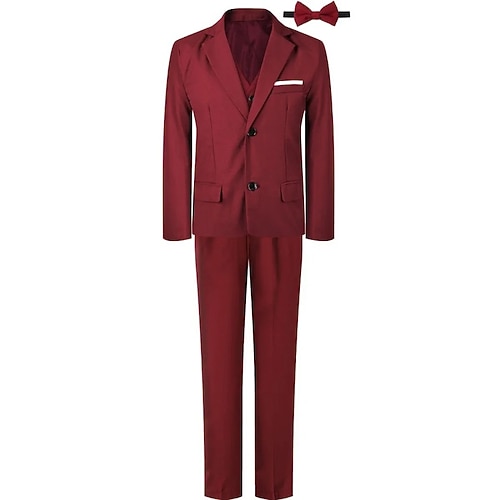 4 pezzi Completo da paggetto Da ragazzo Bambino Tuta Abito formale Blazer, gilet, pantaloni e cravatta Formale Feste San Valentino Di tendenza Fantastico Tinta unica Tasche Bianco Vino Blu marino