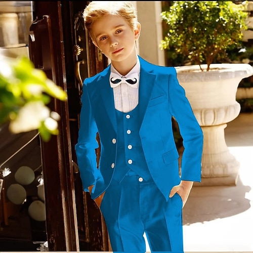 Completo da fedi nuziali per bambini, 3 pezzi, blazer gilet pantaloni da ragazzo, abito formale, casual, da esterno, da festa, alla moda, fresco, basic, tinta unita, tasche, bottoni, blu, nero,