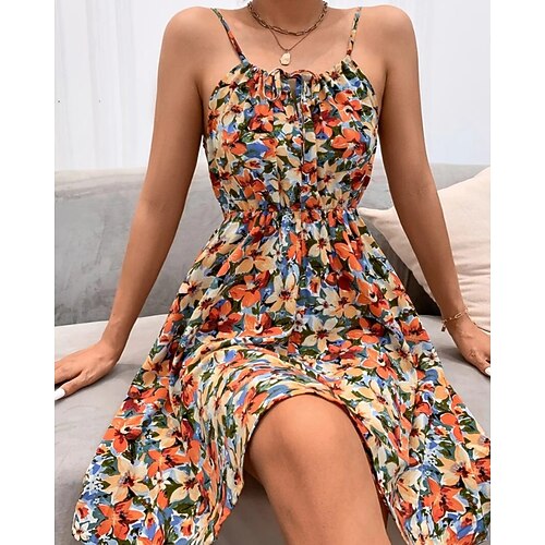 Per donna Abito Midi Vestito Casual Abito Floreale Abito da Spiaggia Hawaiano Casual Quotidiano Vacanza Data Vestibilità regolare Floreale Senza Maniche Girocollo Blu Rosa chiaro Rosa Estate