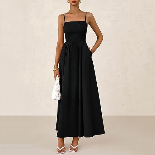 Per donna Abito Midi Abito Estivo Abito Sottoveste Moda Moderno All'aperto Vacanza Uscire Vestibilità regolare Semplice Senza Maniche Spalline Blu Nero Bianco Rosa Estate Primavera