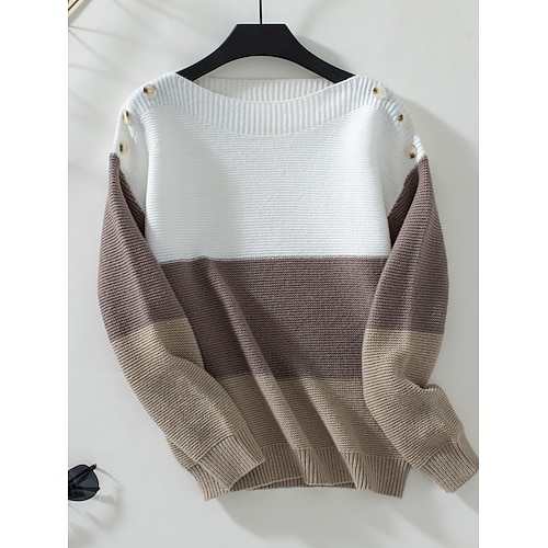 Per donna Felpa Casual Morbido A righe A Coste Girocollo Lavorato a maglia Testurizzato Manica Lunga Top Regolari Maglia All'aperto Quotidiano Weekend Viola Marrone Autunno Inverno