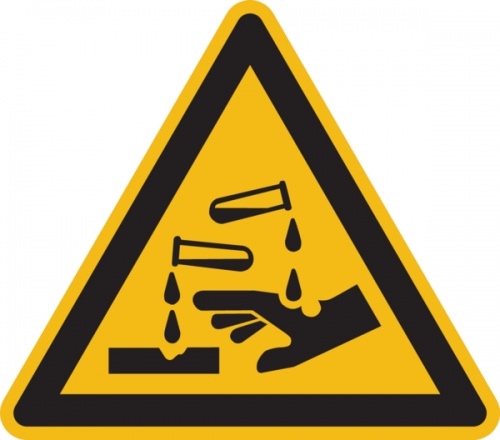 König Werbeanlagen Warnschild, Warnung vor ätzenden Stoffen W023 - ASR A1.3 (DIN EN ISO 7010) - 200 mm Folie selbstklebend