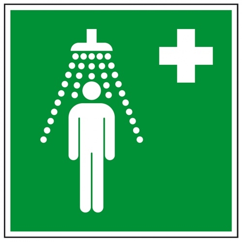 Aufkleber I Rettungszeichen Notdusche, Folie, selbstklebend, 200x200mm, ASR A1.3, DIN EN ISO 7010 E012