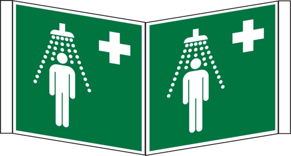 Rettungszeichen, Winkelschild Notdusche E012 - ASR A1.3 (DIN EN ISO 7010) - 200x200x1 mm Kunststoff nachleuchtend