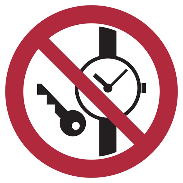 Verbotsschild, Mitführen von Metallteilen oder Uhren verboten P008 - ASR A1.3 (DIN EN ISO 7010) - 100 mm Folie selbstklebend