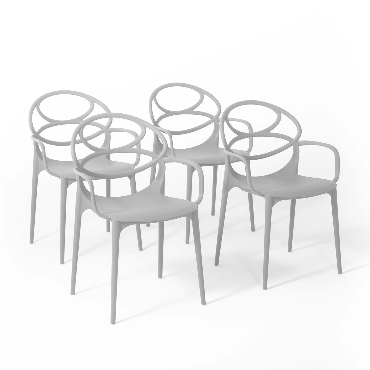 RATTATAN Set aus 4 stapelbaren Stühlen aus Polypropylen mit Glasfaser für Außen-, Garten-, Bar-, Restaurant- oder Küchenbereich – Charlotte – Hellgrau