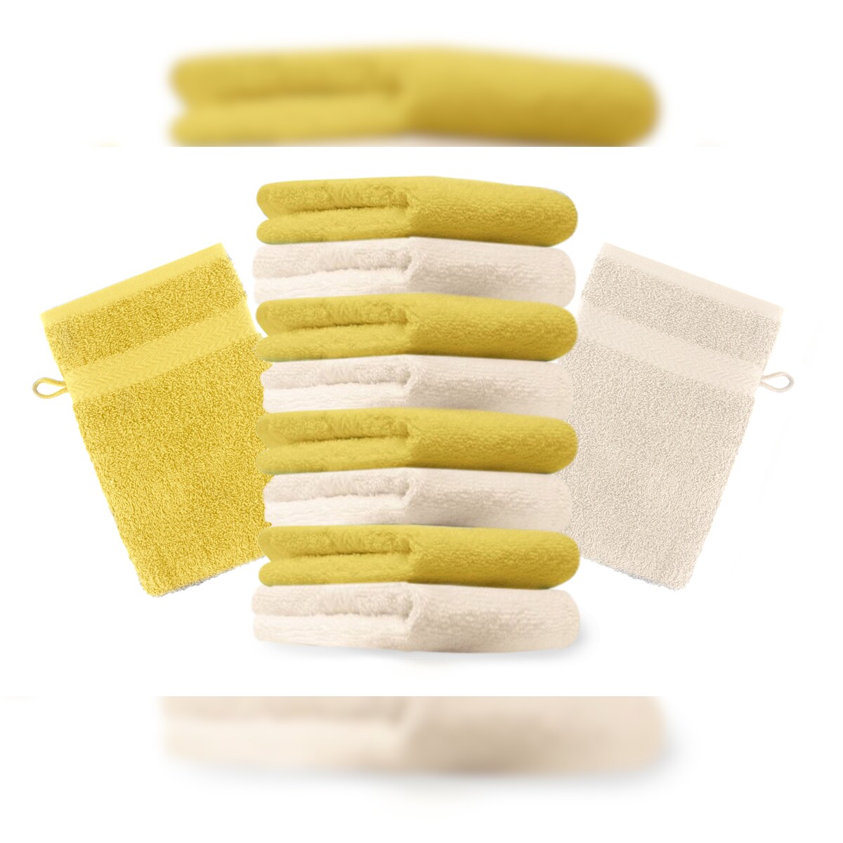 Betz 10 Stück Waschhandschuhe PREMIUM 100% Baumwolle Waschlappen Set 16x21 cm Farbe gelb und beige