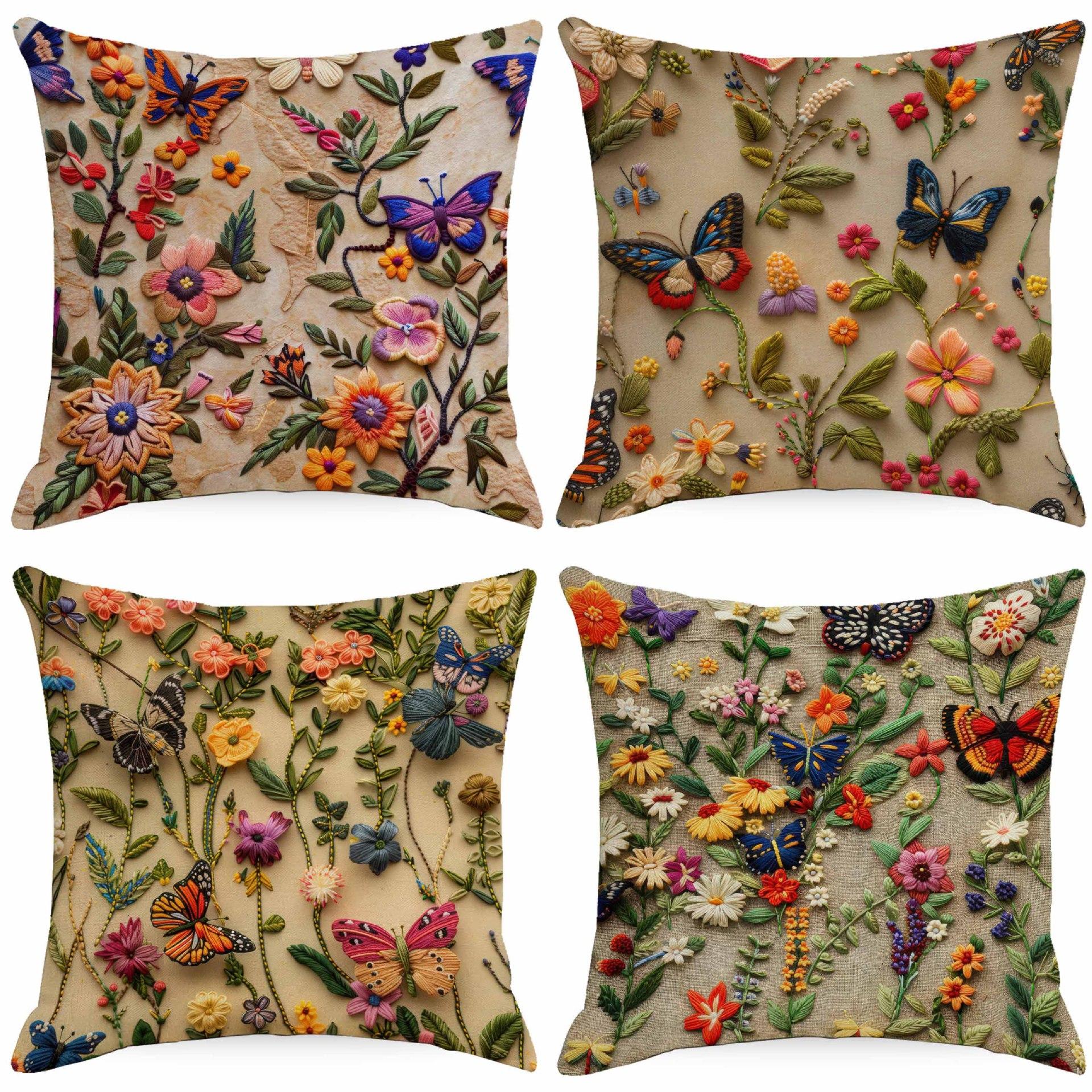 Nieuw 3D Imitatie Geborduurde Bloemen Kussensloop Digitaal Gedrukt Woondecoratie Kussen Bank Kussenhoes