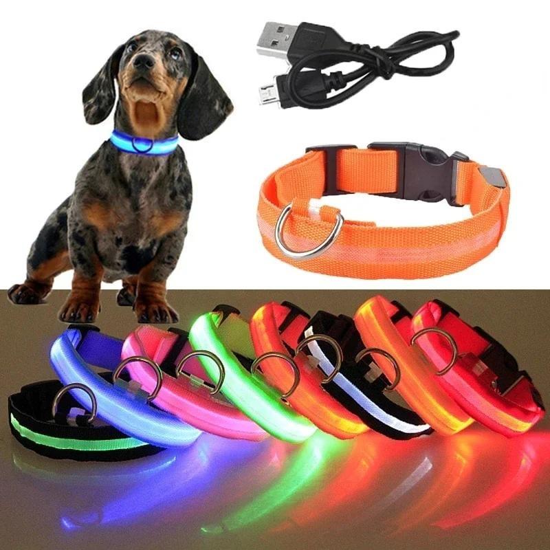 Neues USB-wiederaufladbares LED-Leuchthalsband für Haustierhunde, leuchtende blinkende Halskette, Outdoor-Spaziergänge, Nachtsicherheitszubehör gelb