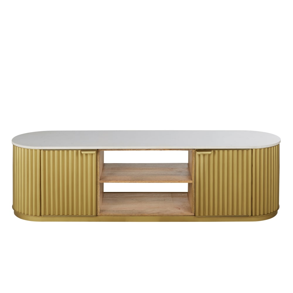Drawer Meuble TV 2 portes 1 tiroir en bois et métal L140cm - Beige Beige 140x55x42cm