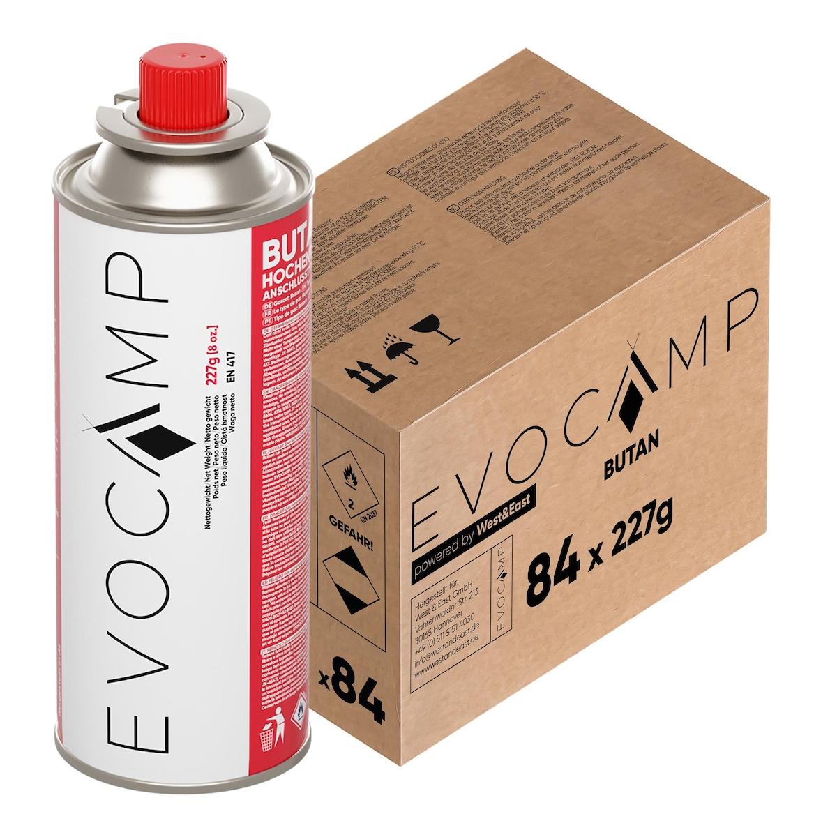 EVOCAMP 84 Stück Gaskartuschen 227g für Gaskocher Butangas- Ideal Trekking, Grillfeste und Picknicks Typ MSF-1a