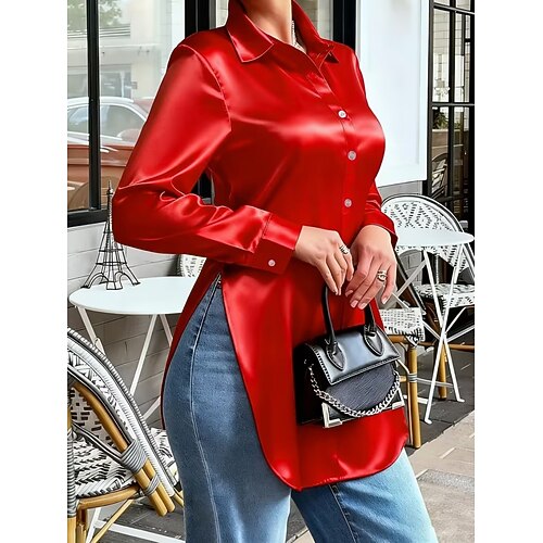 Per donna Camicia Camicia in raso Camicia casual Blusa Bottoni Semplice Elegante Classico Moderno Manica Lunga Colletto a Camicia Top Regolari Quotidiano Ferie Uscire Nero Bianco Rosso Viola Estate