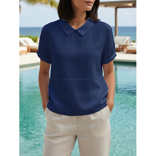 Per donna Camicia Camicie di cotone e lino Camicia da Spiaggia Blusa Semplice Elegante Classico Moderno Manica Corta Colletto a Camicia Top Regolari Quotidiano Ferie Abbigliamento mare Blu Bianco Blu