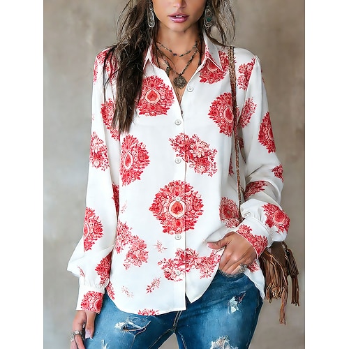 Per donna Camicia Bottoni Stampato Grafico Paisley Vintage Elegante Moderno Manica Lunga Colletto a Camicia Top Regolari Quotidiano Bianco Rosso Viola Arancione Estate Primavera