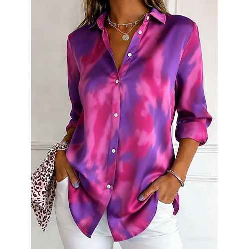 Per donna Camicia Camicia da lavoro Glitter Ombre Grafico Elegante Casual Manica Lunga Colletto a Camicia Top Regolari Quotidiano Lavoro Abbigliamento da sera Blu Rosa Viola Oro Verde Primavera