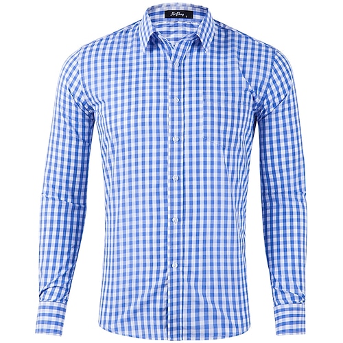 Per uomo Camicia Camicia elegante Camicia con Colletto Camicia con Bottoni A Quadri / A Righe / Chevron / Rotondo Abbigliamento quotidiano Abbigliamento Aziendale Bianco kaki Rosa Vino Blu marino