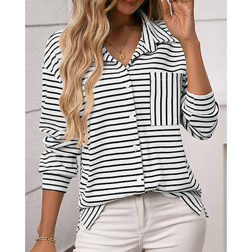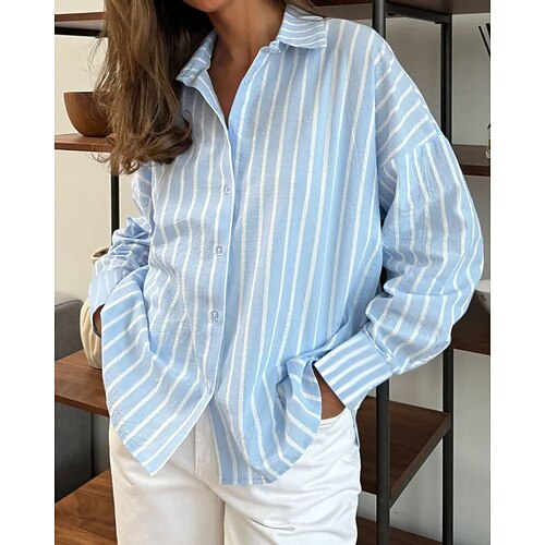 Per donna Camicia Blusa A righe Elegante Manica Lunga Colletto a Camicia Top Regolari Quotidiano Ferie Uscire Bottoni Rosa Grigio Azzurro Primavera Autunno Inverno