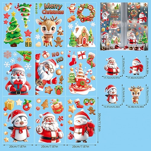 9 fogli di adesivi murali natalizi per finestre, decorazioni, omini di pan di zenzero, pupazzi di neve, fiocchi di neve Babbo Natale, adesivo statico, festa di Natale a casa arredamento del negozio