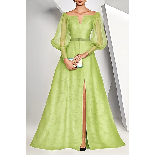 Linea ad A Lunghezza al pavimento Abito da Sera Abito formale Elegante Spacco Alto Manica Lunga Scollo a V Matrimonio Formale Chiffon con Spacco